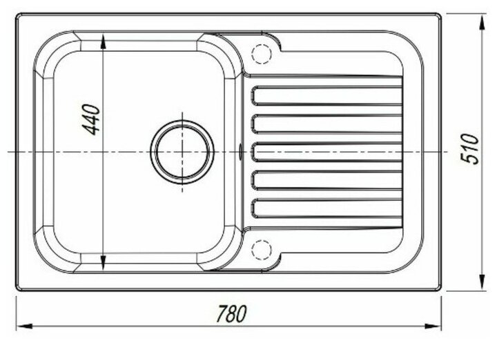ПереливС сифоном, ПереливС сифономСливные желобки на крыле, корзинчатый вентиль, отверстие под смеситель, сливная арматура