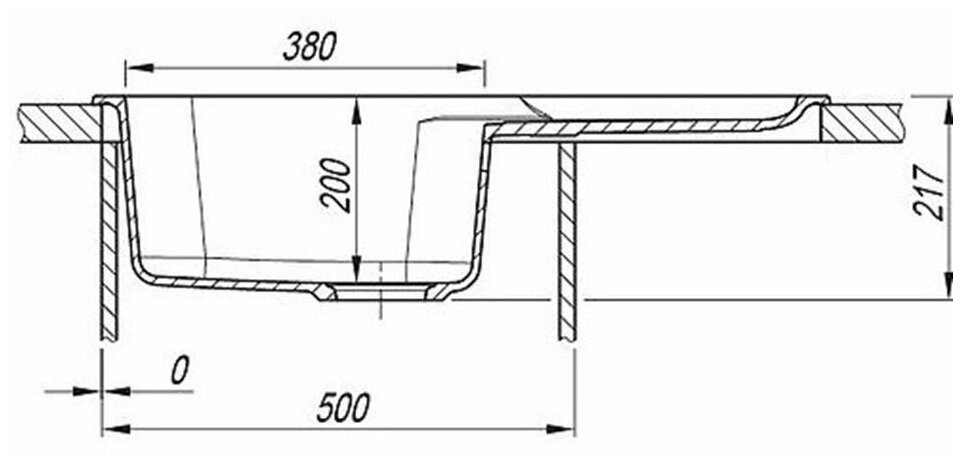 ПереливС сифоном, ПереливС сифономСливные желобки на крыле, корзинчатый вентиль, отверстие под смеситель, сливная арматура