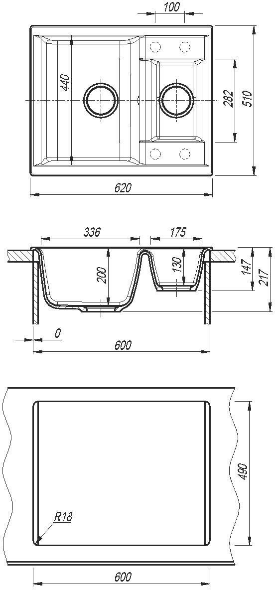 дополнительная чаша, ПереливС сифоном, дополнительная чаша,отверстие под смеситель, корзинчатый вентиль, отверстие под смеситель, сливная арматура
