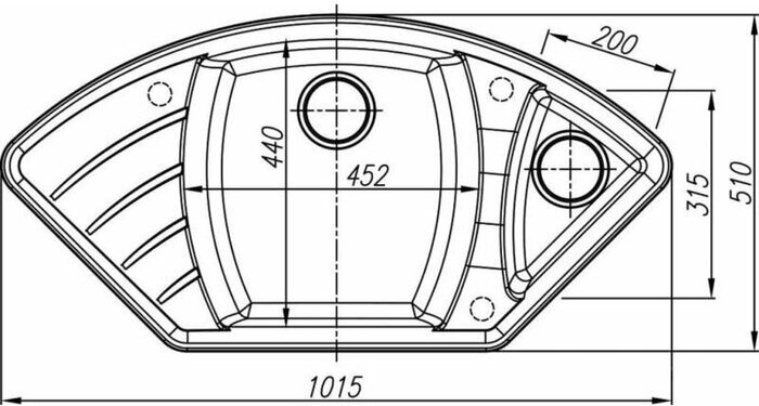 дополнительная чаша, угловая, Дополнительная чашаПереливС сифономСливные желобки на крыле, ПереливС сифоном, корзинчатый вентиль, отверстие под смеситель, сливная арматура