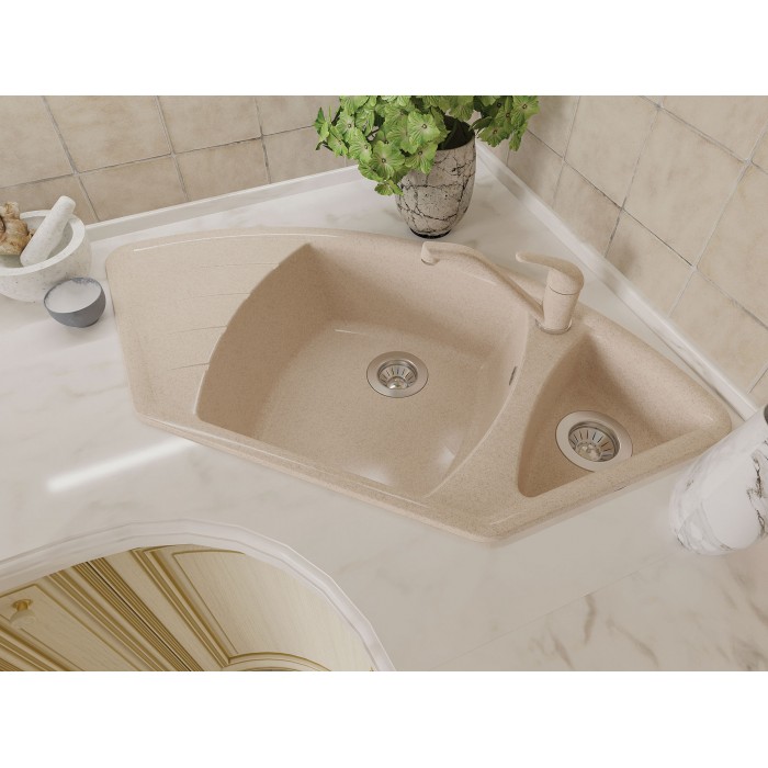 дополнительная чаша, угловая, Дополнительная чашаПереливС сифономСливные желобки на крыле, ПереливС сифоном, корзинчатый вентиль, отверстие под смеситель, сливная арматура