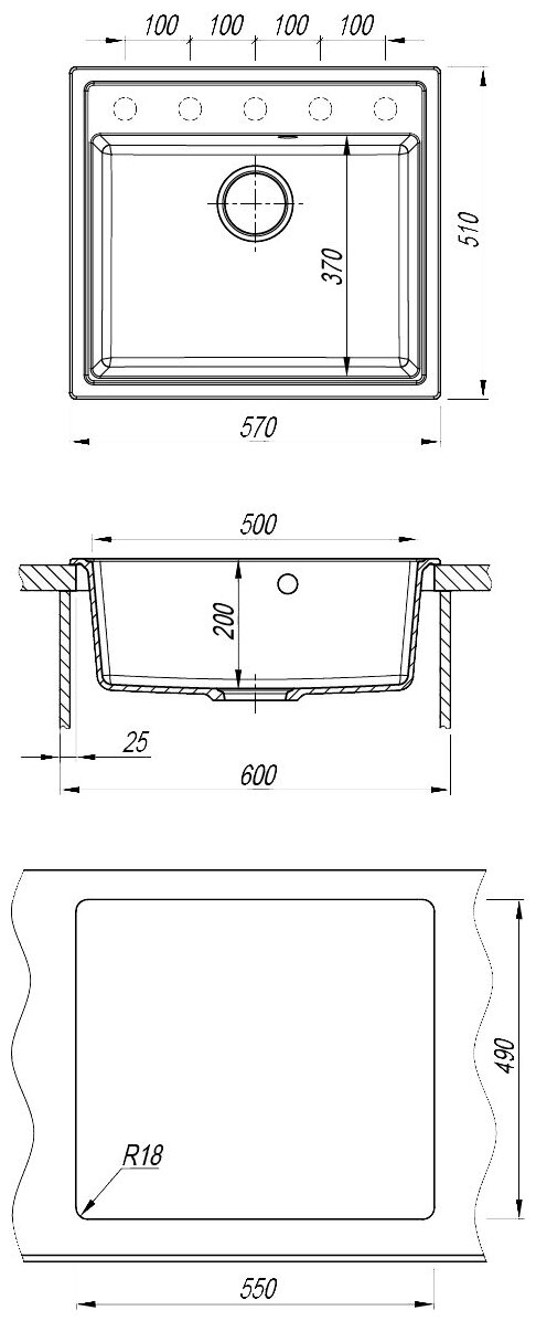корзинчатый вентиль, отверстие под смеситель, сливная арматура, документация