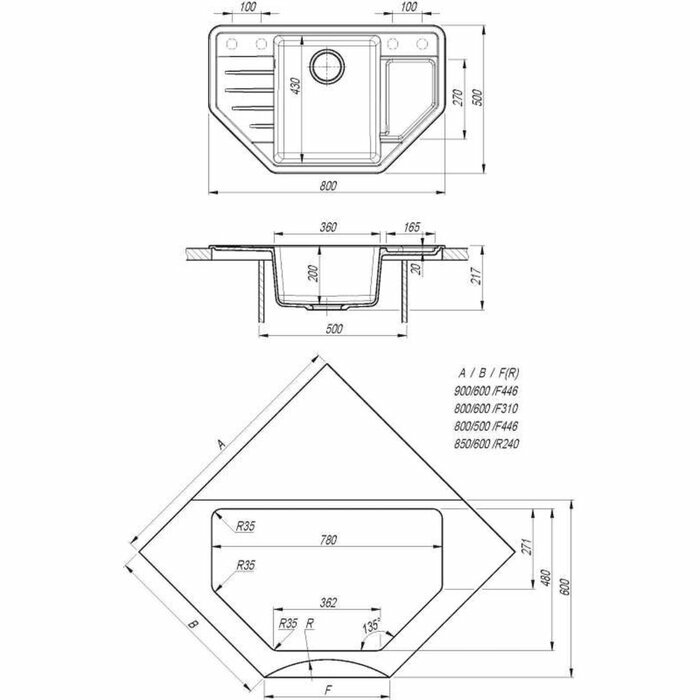 угловая, ПереливС сифоном, ПереливС сифономСливные желобки на крыле, корзинчатый вентиль, отверстие под смеситель, сливная арматура