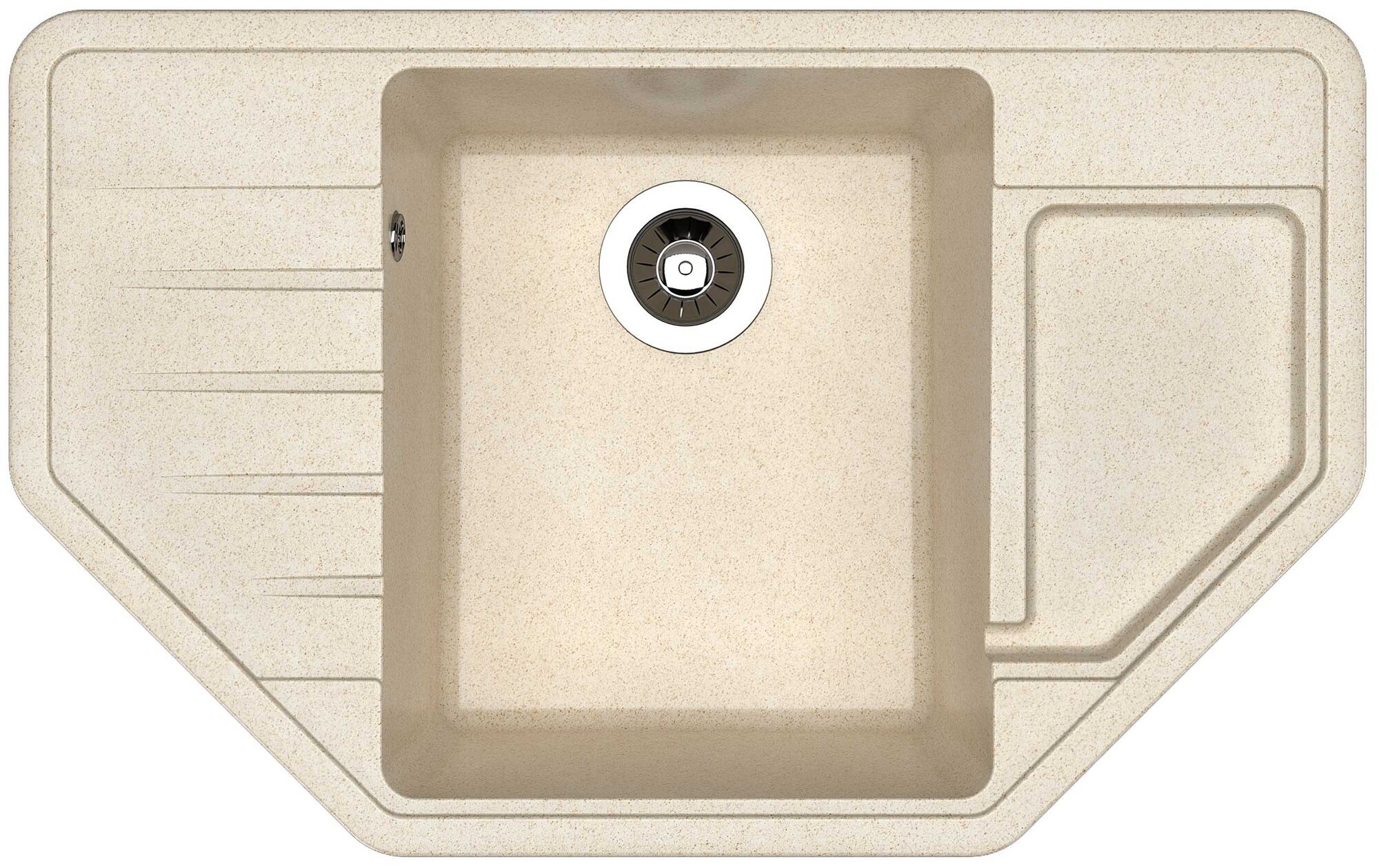 угловая, ПереливС сифоном, ПереливС сифономСливные желобки на крыле, корзинчатый вентиль, отверстие под смеситель, сливная арматура