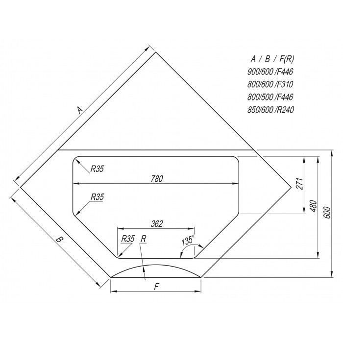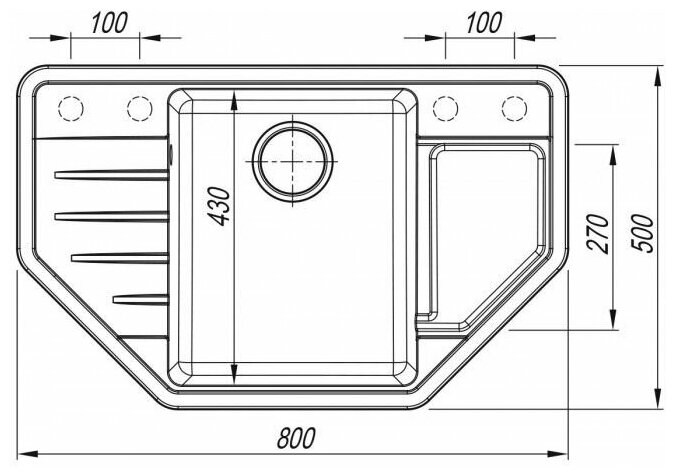 угловая, ПереливС сифоном, корзинчатый вентиль, отверстие под смеситель, сливная арматура