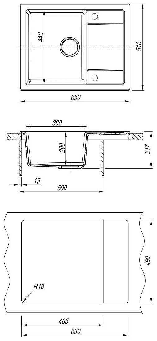 Кухонная мойка Dr.Gans Техно 650 базальт 25.030.C0650.409