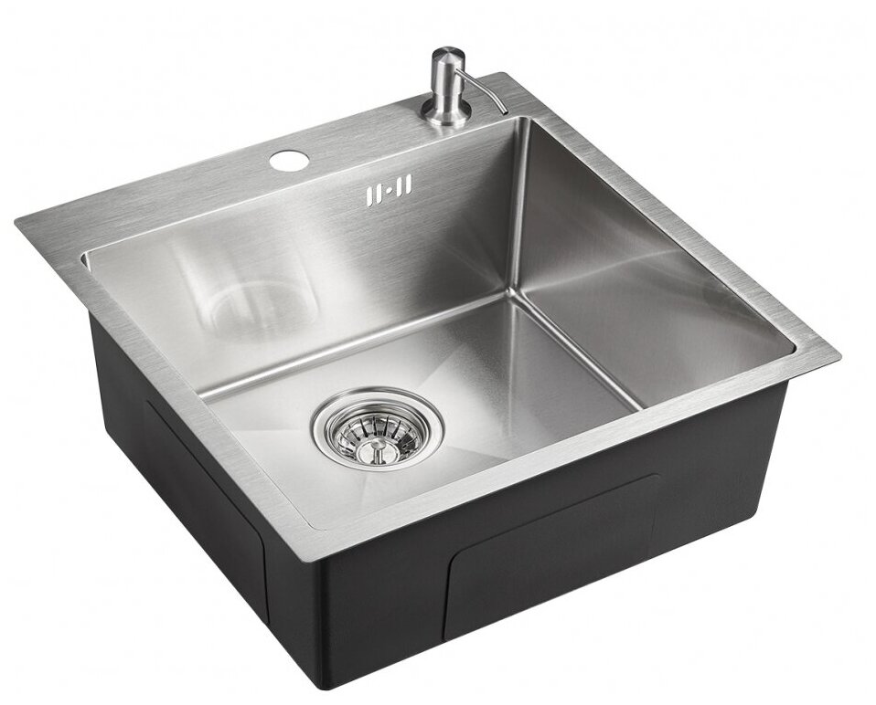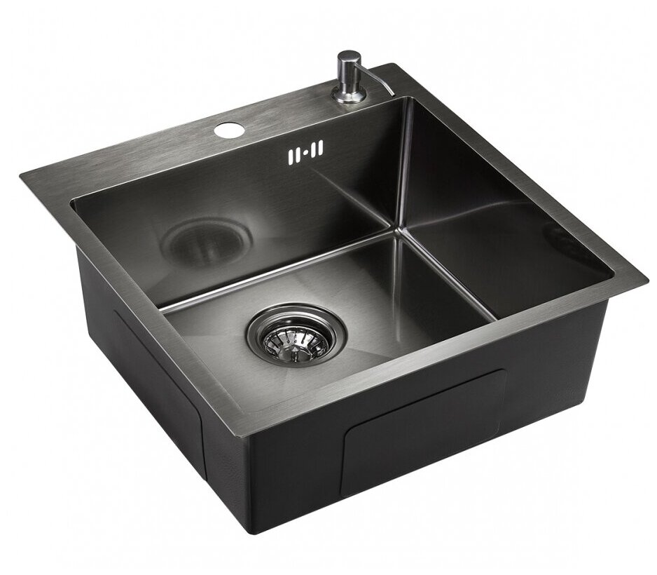PVD покрытие, Матовая, Нет, Перелив, С сифоном, отверстие под смеситель, сливная арматура