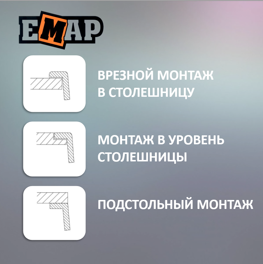 врезная, интегрированная, Вровень со столешницей, врезная на/под/вровень со столешницей, универсальная