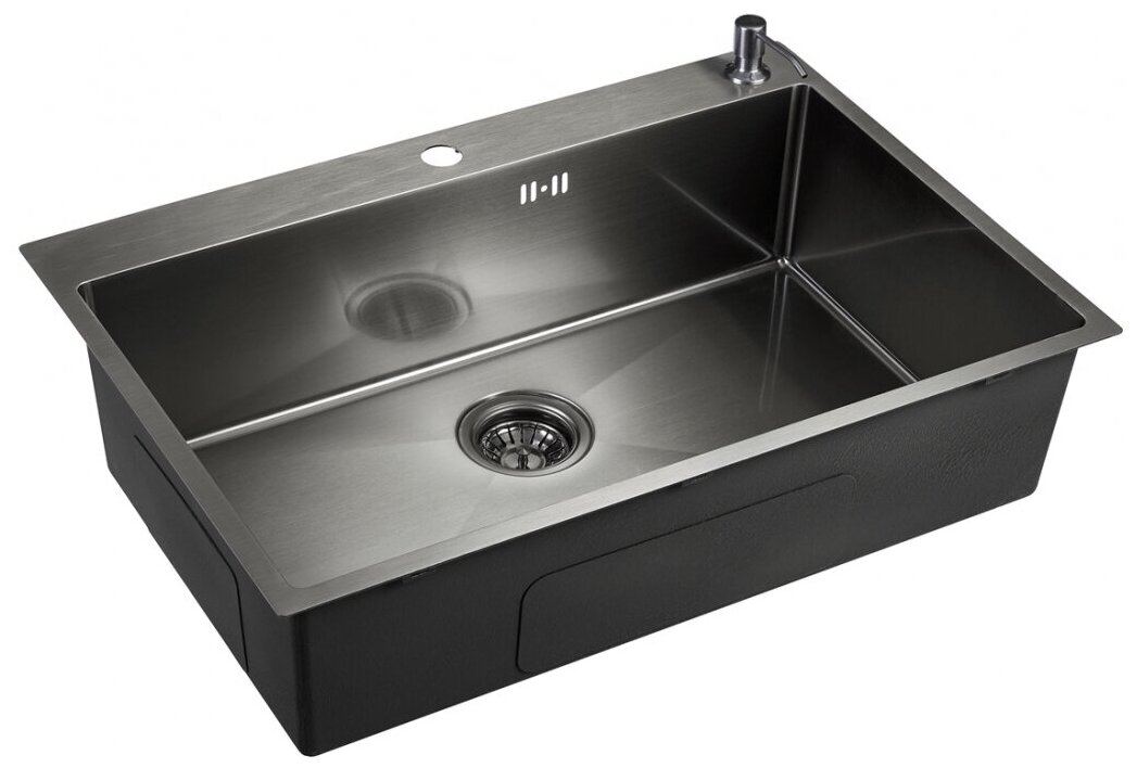 PVD покрытие, корзинчатый вентиль, отверстие под смеситель, сливная арматура, Мойка, гарантийный талон, крепл., панель, рама, сливной бачок, шаблон