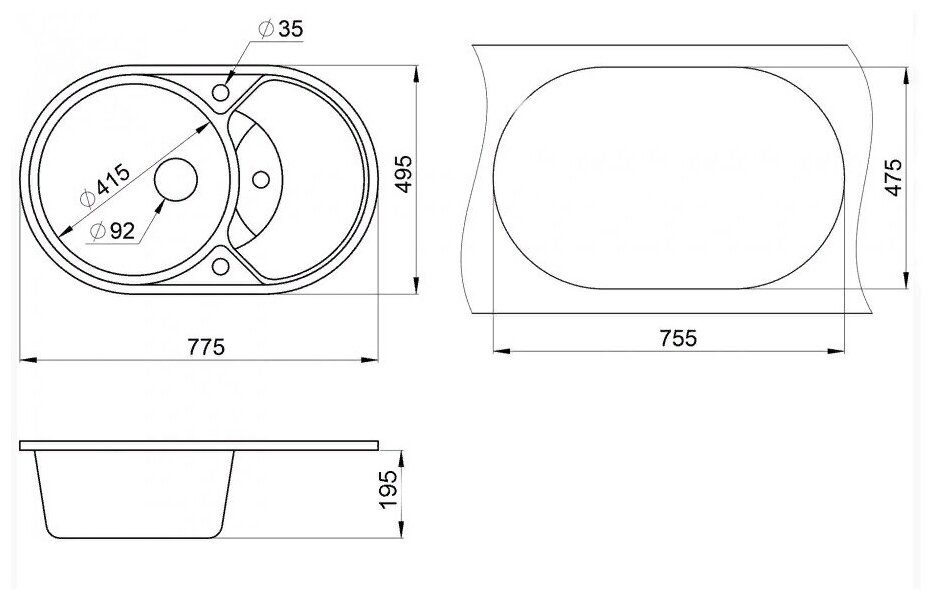 Кухонная мойка Emar EMQ-1775.C Антрацит