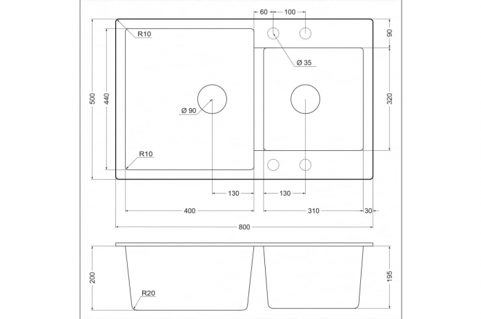 Кухонная мойка Emar EMQ-2800.Q Опал