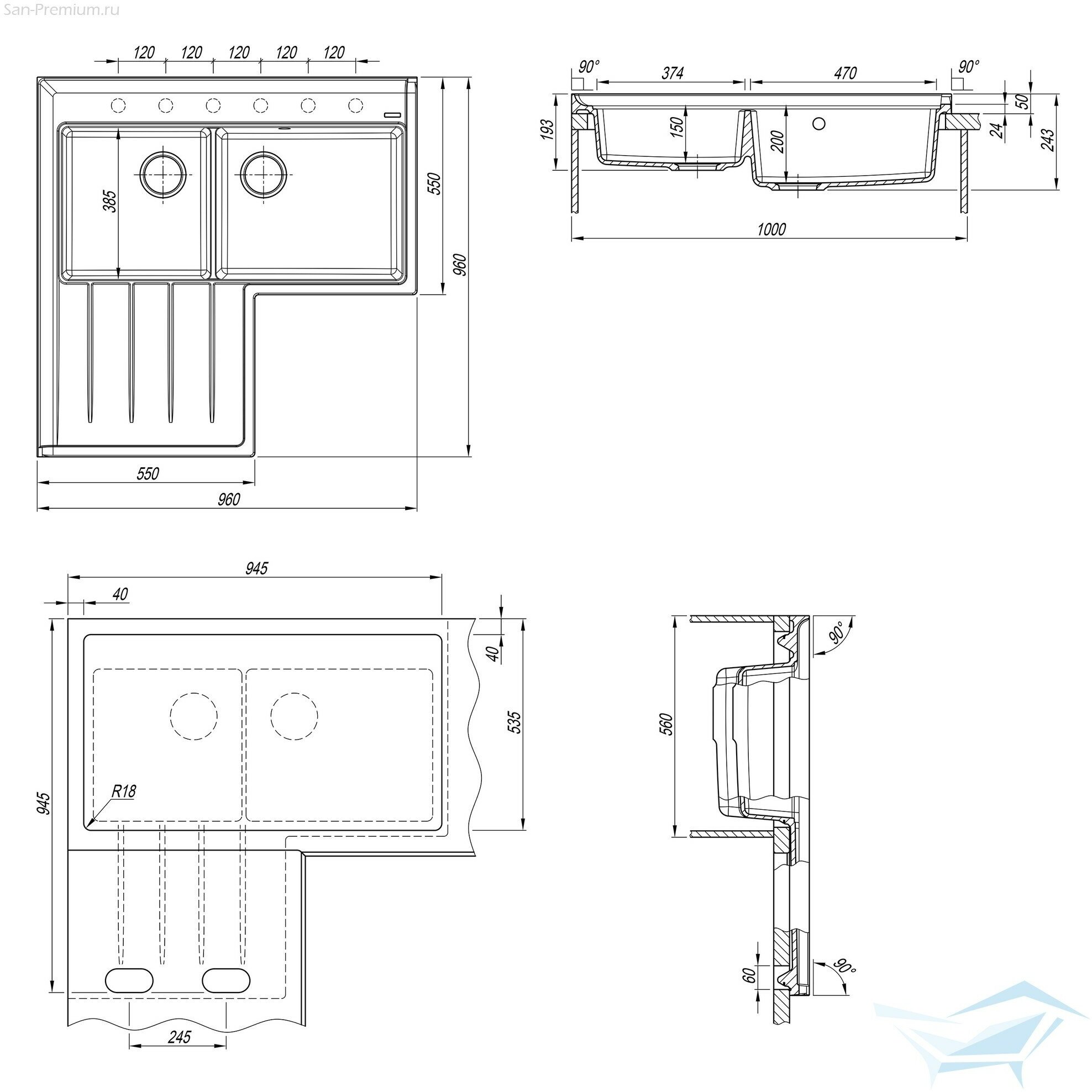 Кухонная мойка Florentina Адрия антрацит 20.380.L0960.302