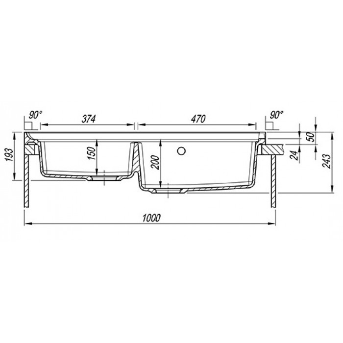 корзинчатый вентиль, сливная арматура, Отводная арматура с выпуском 3 ? ” (D=90 мм) и переливом, мойка
