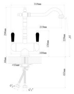 Перелив, С сифоном, корзинчатый вентиль, отверстие под смеситель, сливная арматура