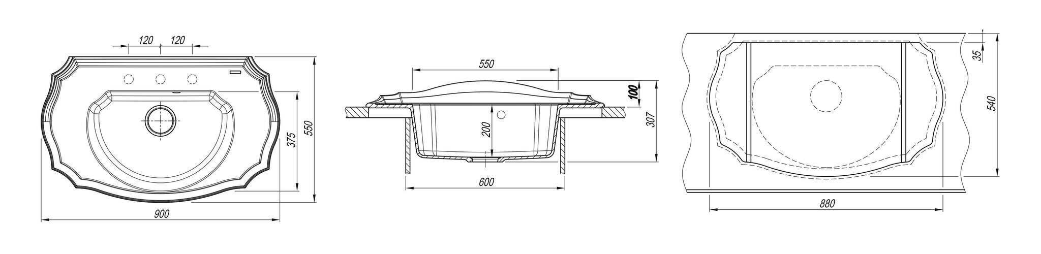 Ширина мойки