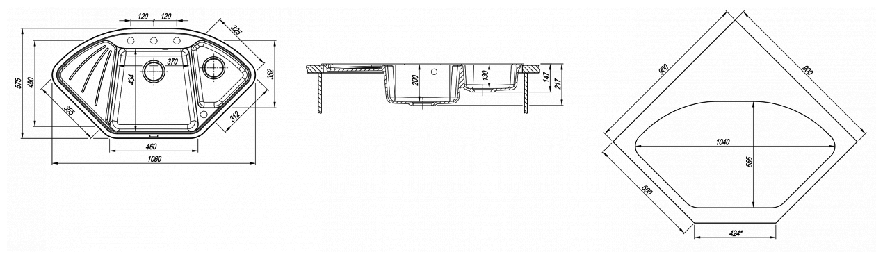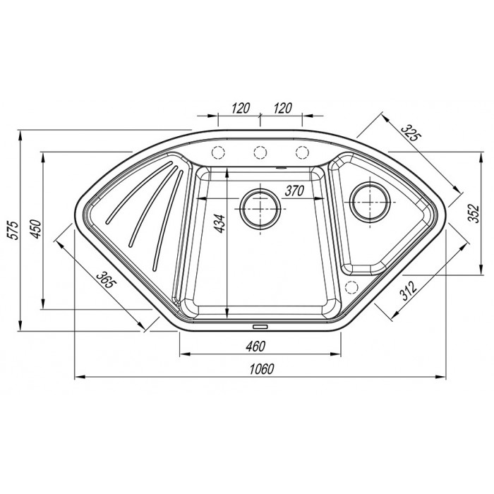 обновленный дизайн; материал: Florengran; в комплекте отводная арматура для двух разноуровневых чаш с выпусками 3 1/2” (D=90 мм) и переливом
