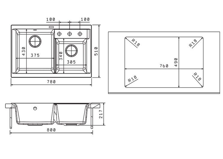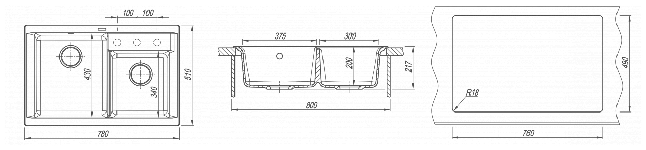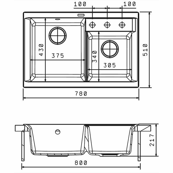 дополнительная чаша, ПереливС сифоном, корзинчатый вентиль, отверстие под смеситель, сливная арматура