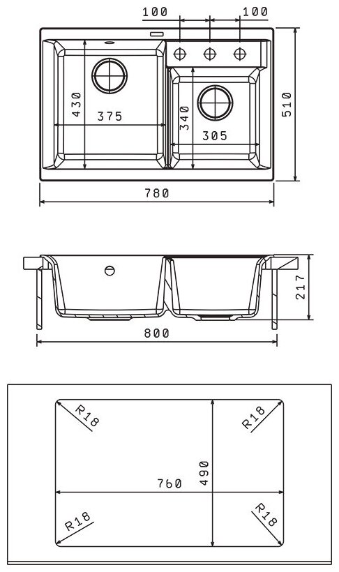 Отводная арматура с выпуском для двух одноуровневых чаш 3 ? ” (D=90 мм) с переливом