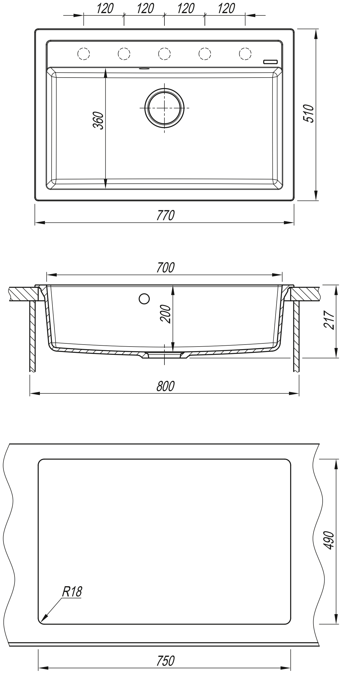 Кухонная мойка Florentina Липси 770 черный 20.440.E0770.102