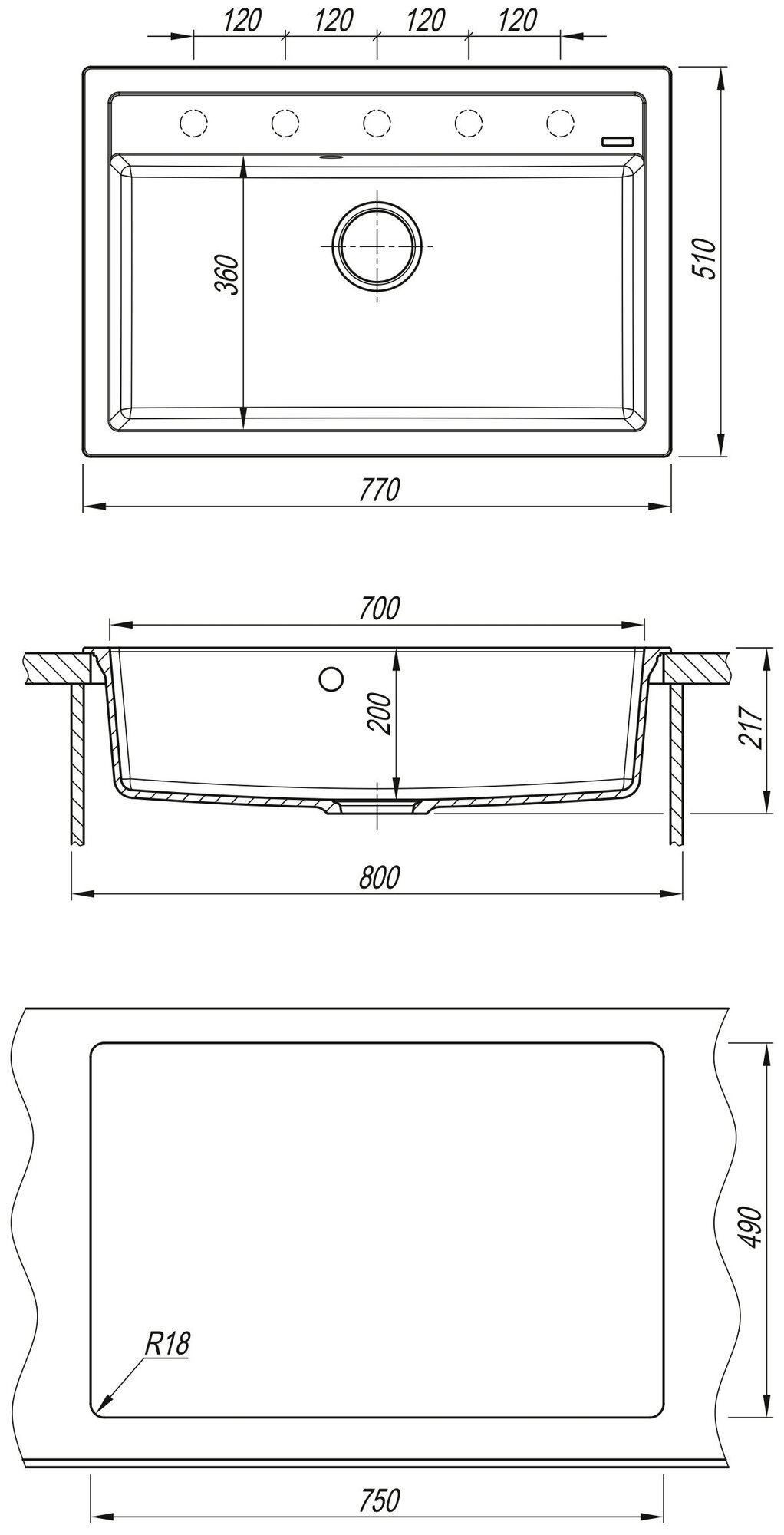 корзинчатый вентиль, отверстие под смеситель, сливная арматура