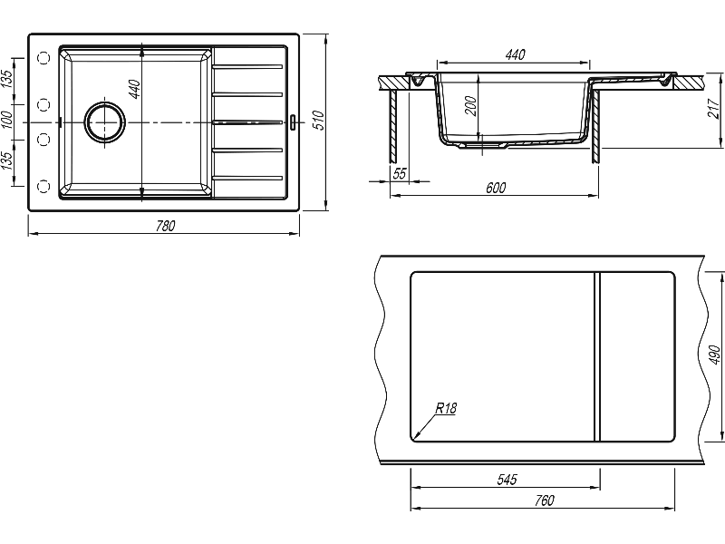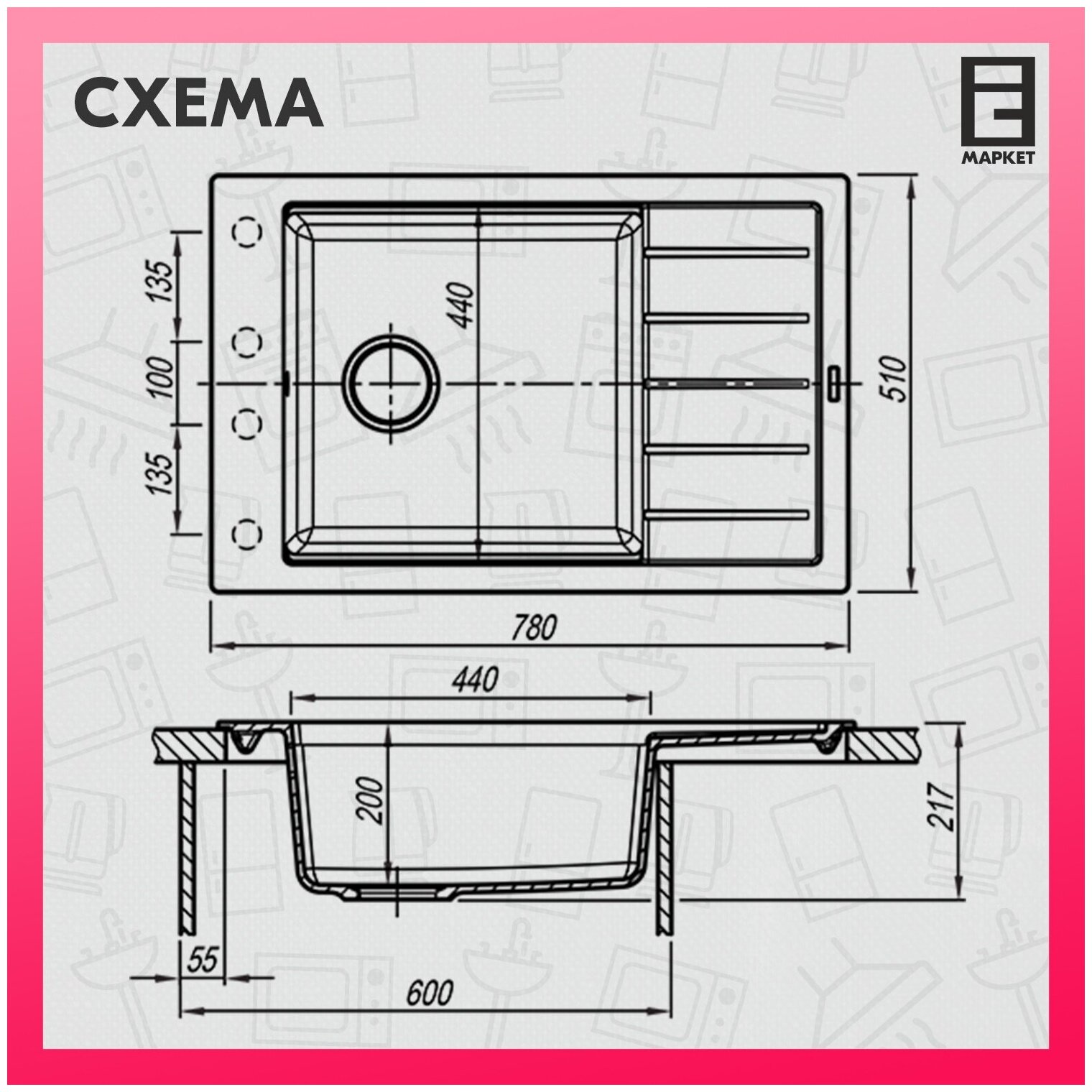 Кухонная мойка Florentina Липси 780P антрацит 20.275.D0780.302