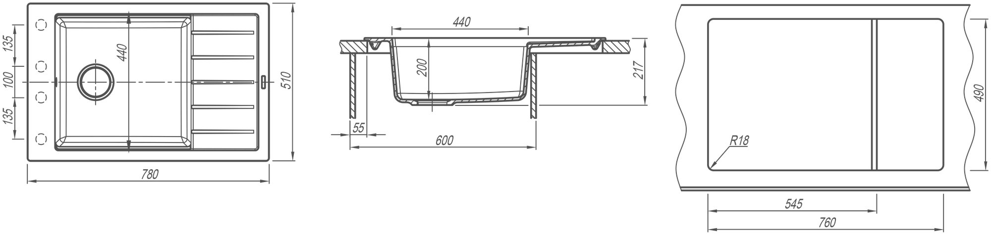 корзинчатый вентиль, крепеж, отверстие под смеситель, сливная арматура, смеситель, Отводная арматура с выпуском 3 ? ” (D=90 мм) и переливом, Отводная арматура с выпуском 3 ½ ” (D=90 мм) и переливом, мойка, решетка из нержавеющей стали