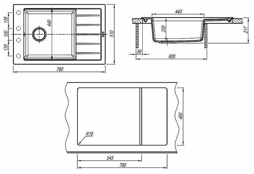 Дезинфекция, Перелив, С сифоном, корзинчатый вентиль, отверстие под смеситель, сливная арматура