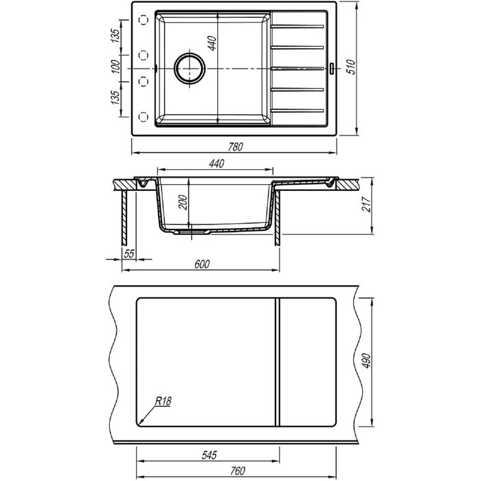 Дезинфекция, Перелив, С сифоном, корзинчатый вентиль, отверстие под смеситель, сливная арматура