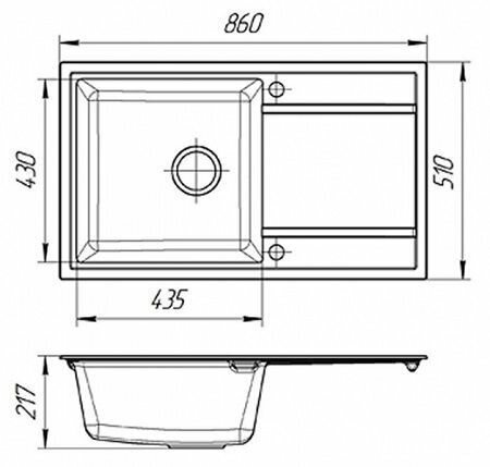 корзинчатый вентиль, отверстие под смеситель, сливная арматура, Отводная арматура с выпуском 3 ? ” (D=90 мм) и переливом, мойка