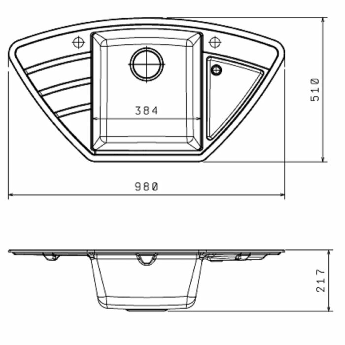 угловая, Перелив, С сифоном, Сливные желобки на крылеПереливС сифоном, отверстие под смеситель