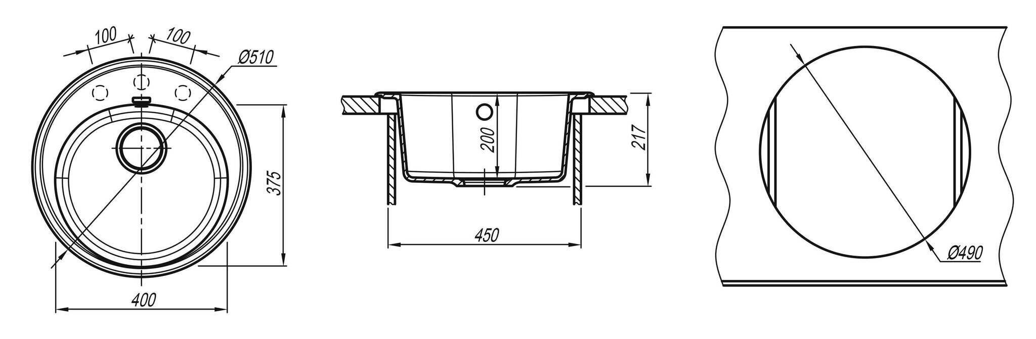 комплектация: мойка, отводная арматура с выпуском 3 ½ ” (D=90 мм) и переливом