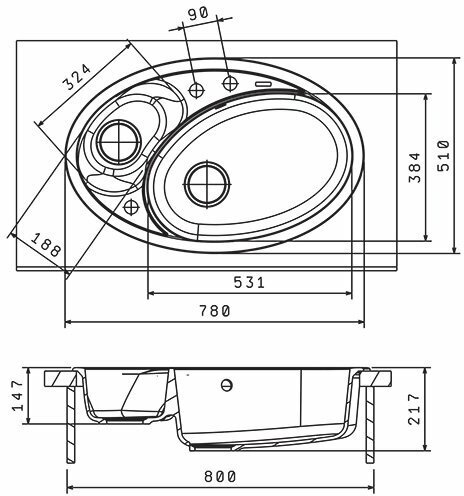дополнительная чаша, отверстие под смеситель