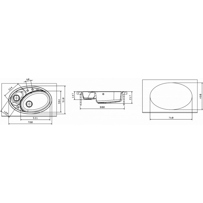 дополнительная чаша, корзинчатый вентиль, отверстие под смеситель, сливная арматура