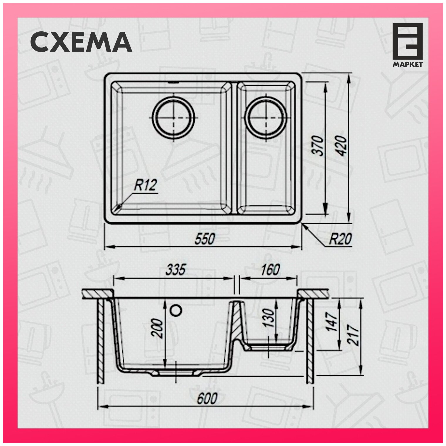 дополнительная чаша, С сифоном, отверстие под смеситель