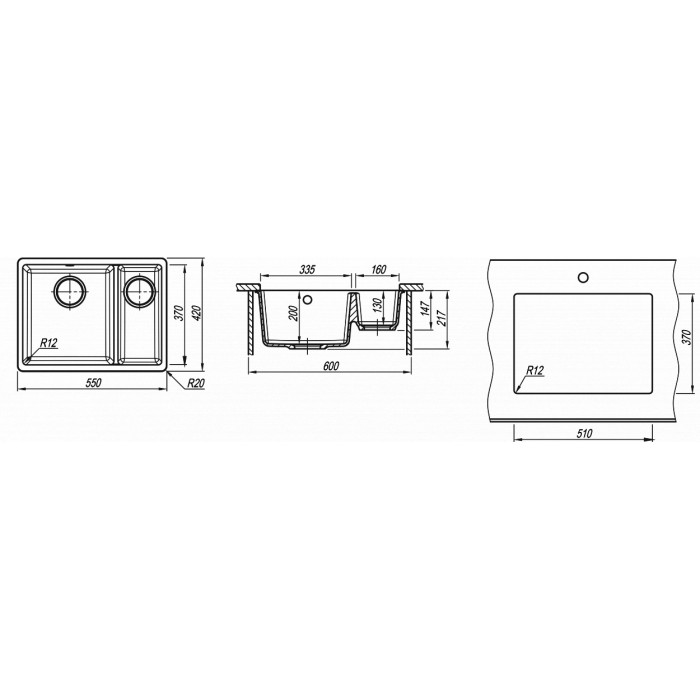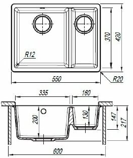 Кухонная мойка Florentina Вега 335/160 черный 22.325.D0500.102