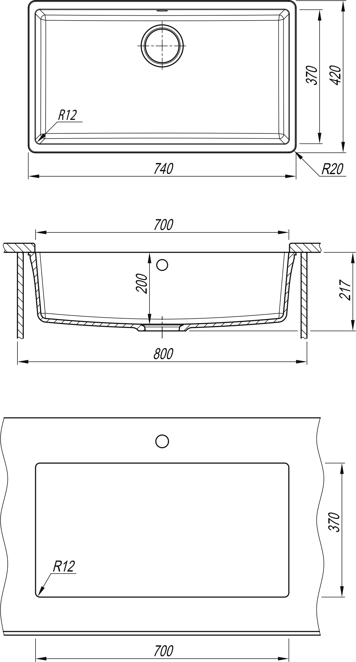 Кухонная мойка Florentina Вега 700 антрацит 22.435.E0700.302