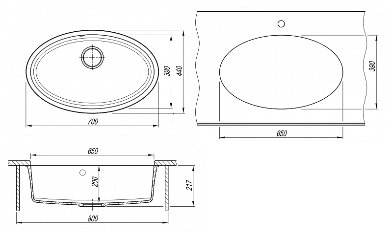 Кухонная мойка Florentina Вега Овал антрацит 22.430.E0650.302