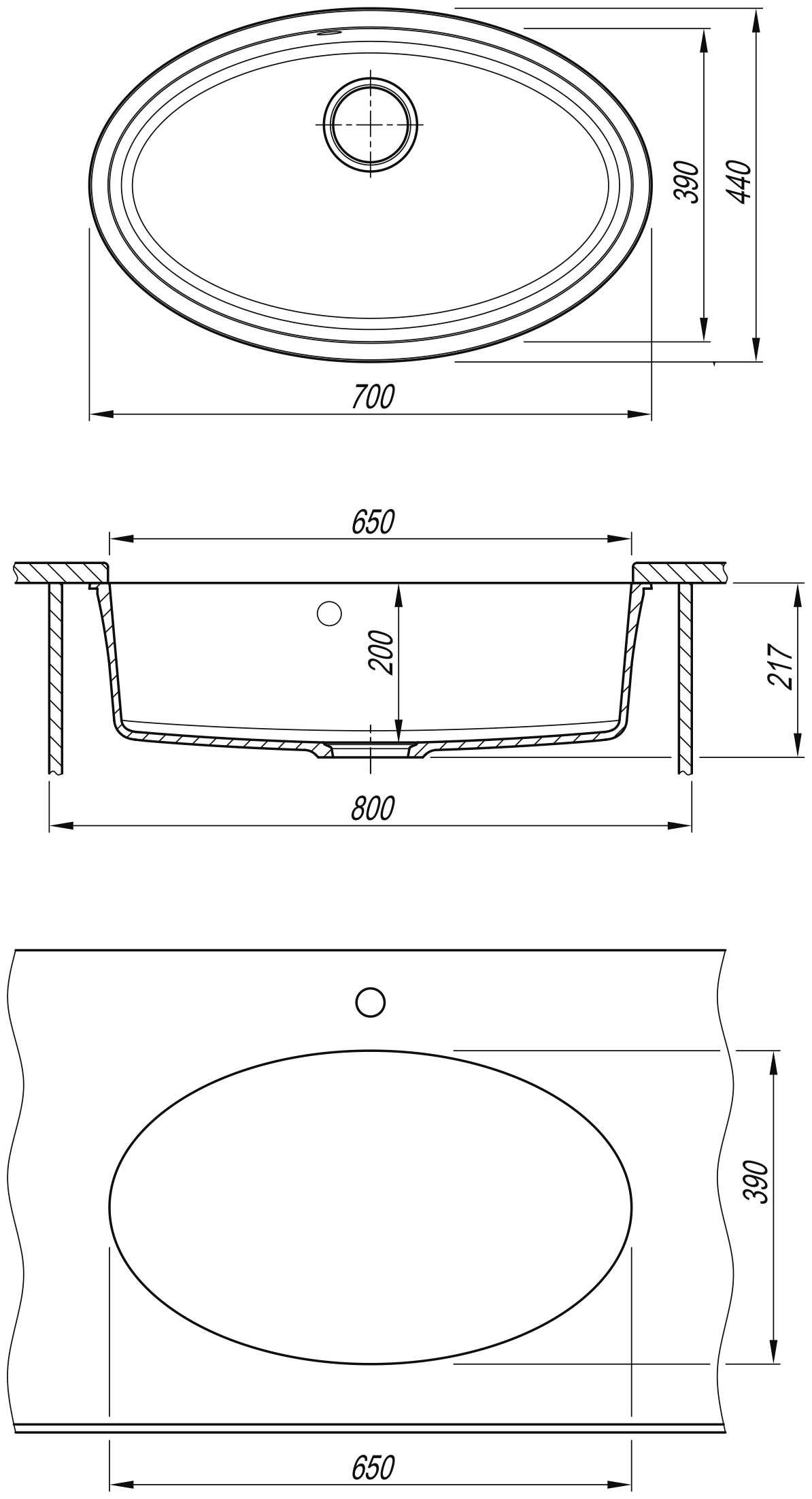 Кухонная мойка Florentina Вега Овал черный 22.430.E0650.102