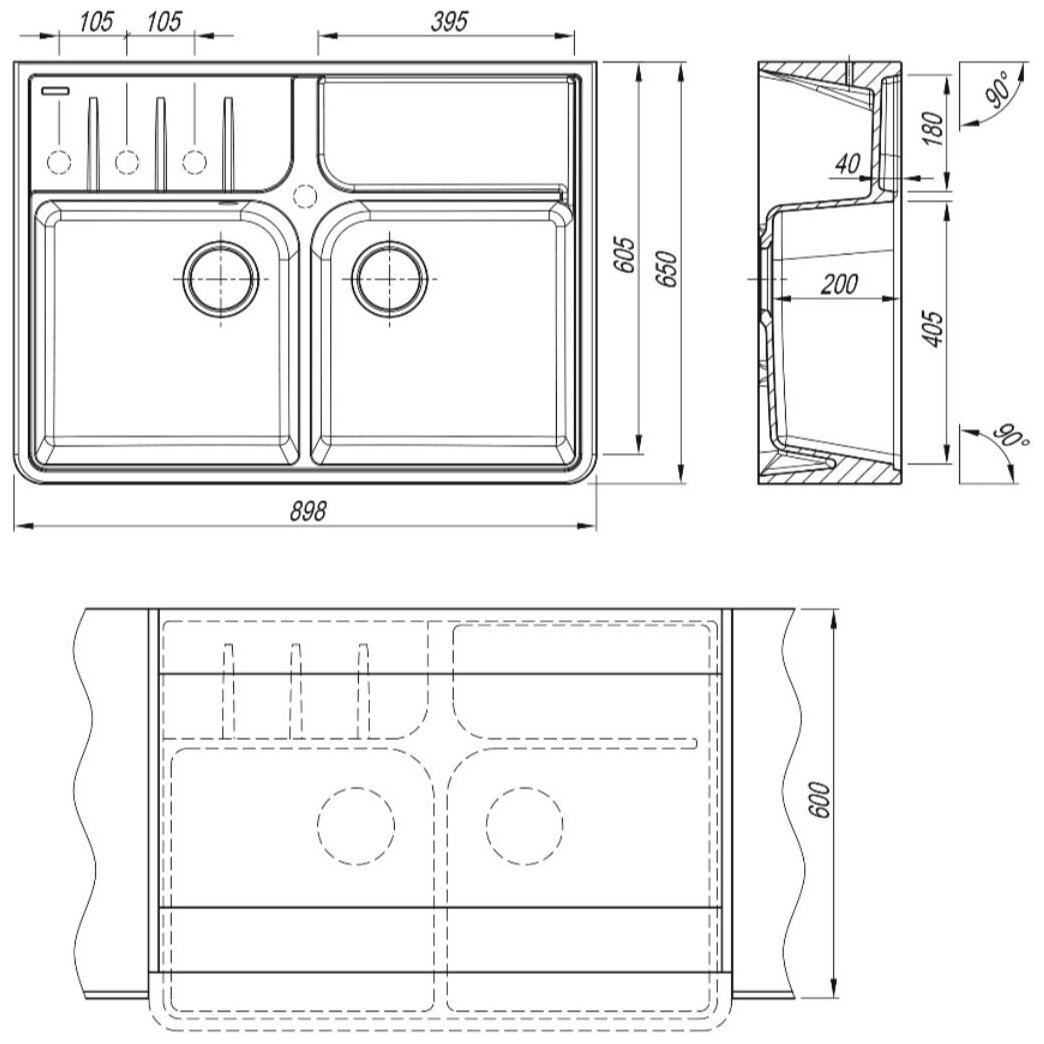 дополнительная чаша, дополнительная чаша,отверстие под смеситель
