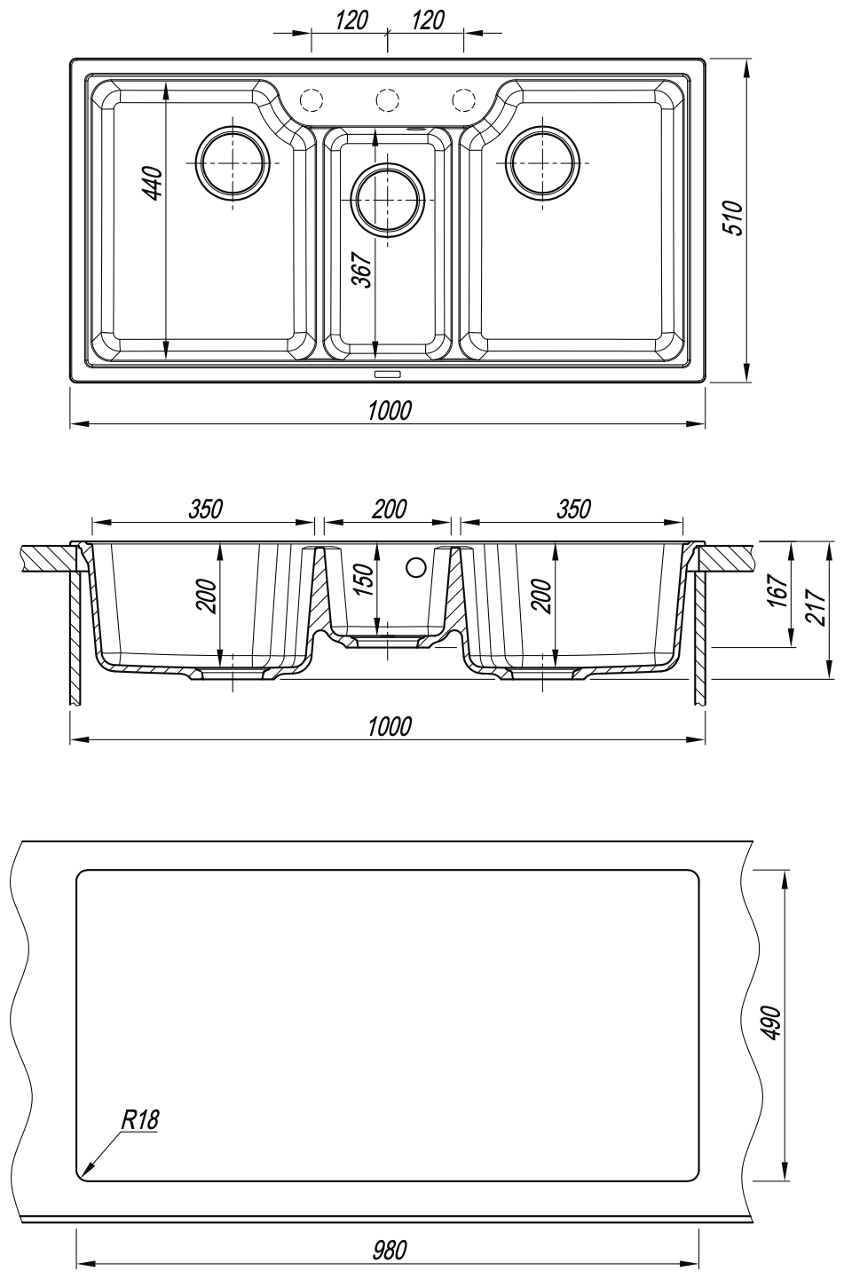 Ширина мойки