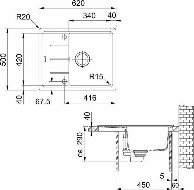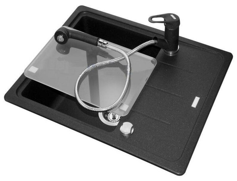 клапан-автомат, корзинчатый вентиль, отверстие под смеситель, сливная арматура, Кухонная мойка, Мойка - 1 шт., два стоп-вентиля 3 1/2", документация. Сифон заказывается отдельно., мойка