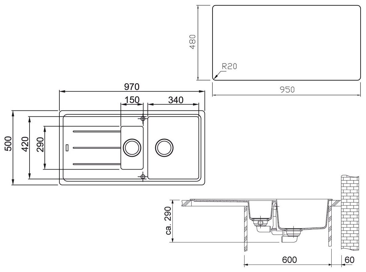 Размеры мойки (ШхГ)
