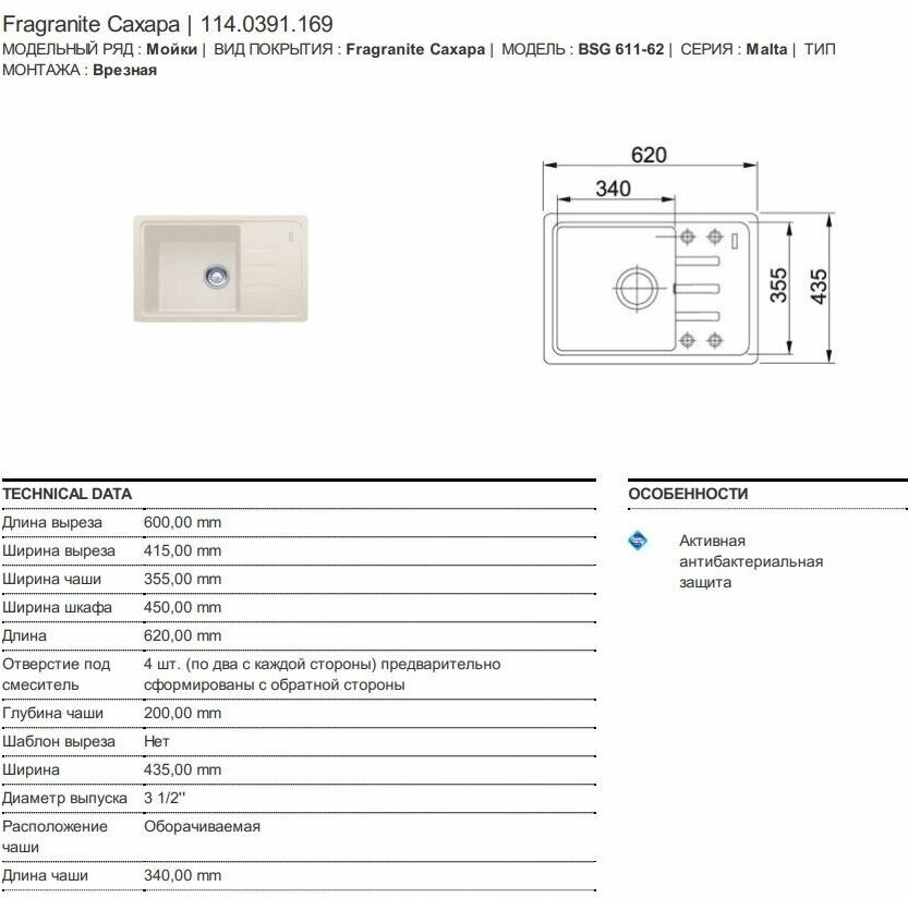 Кухонная мойка Franke BSG 611-62 114.0604.562 серый