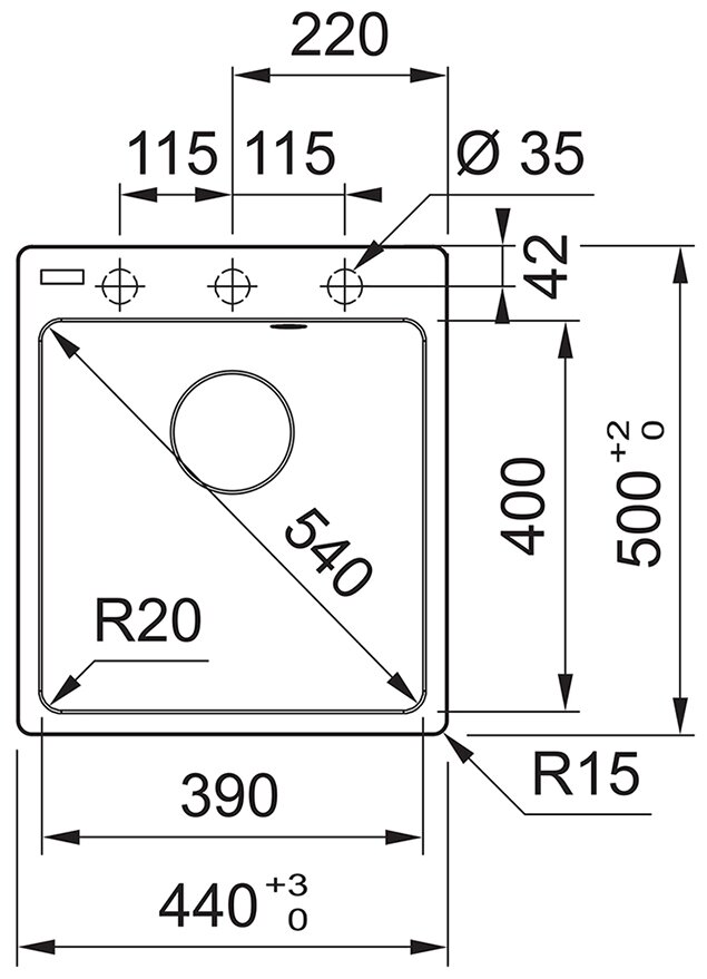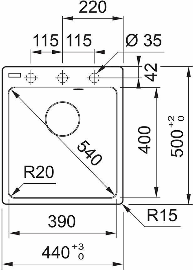 Радиус скругления мойки (см)