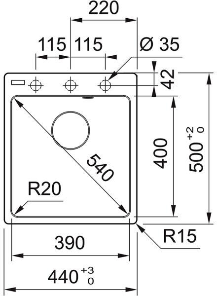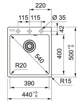 Радиус скругления мойки (см)
