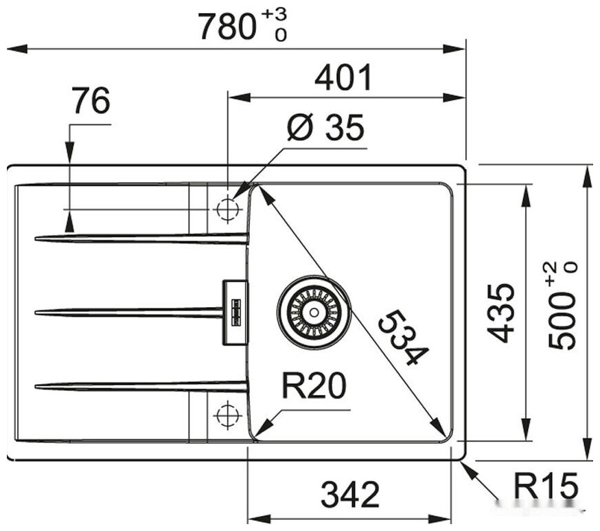 Радиус скругления мойки (см)