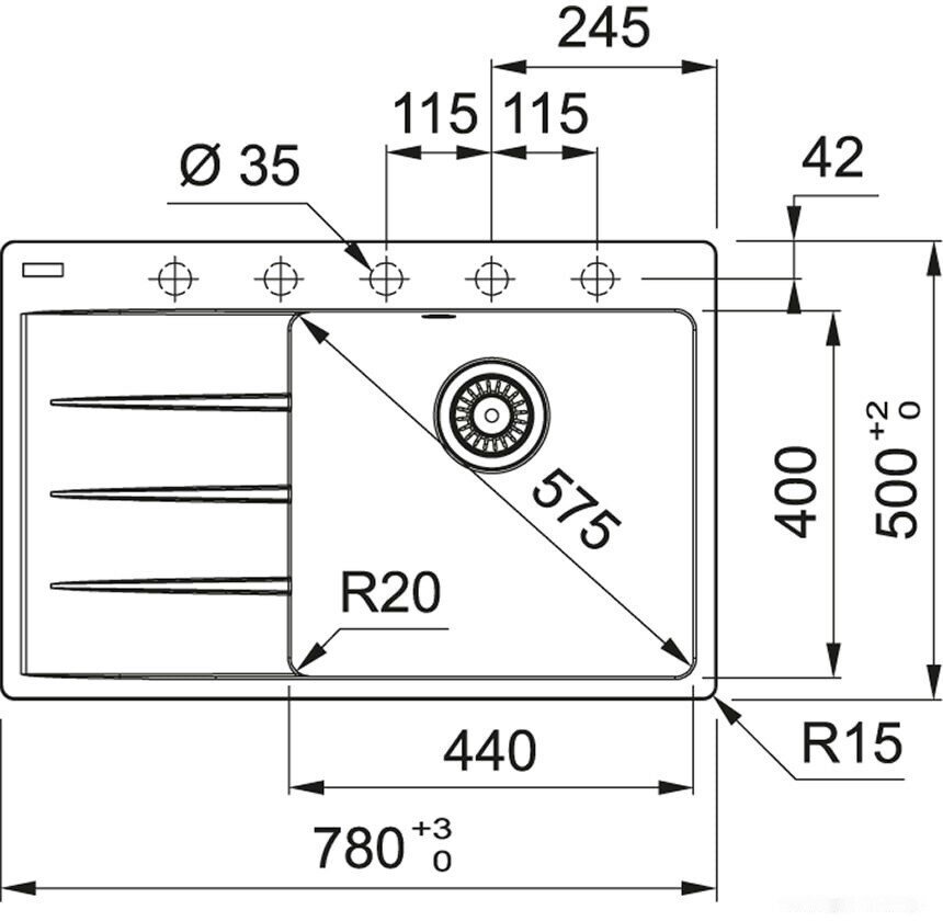 Радиус скругления мойки (см)