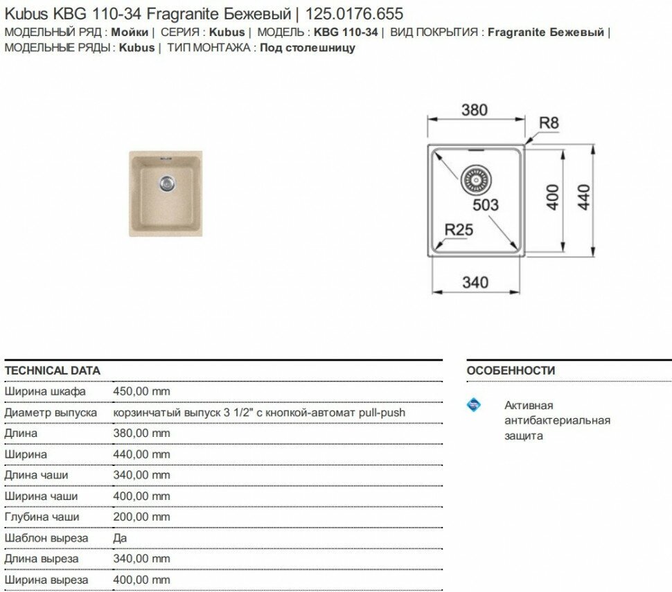 Кухонная мойка Franke KBG 110-34 125.0023.835 серый камень
