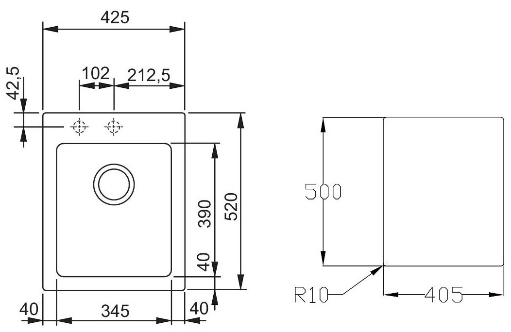 Размер монтажного отверстия под мойку (ШхГ)