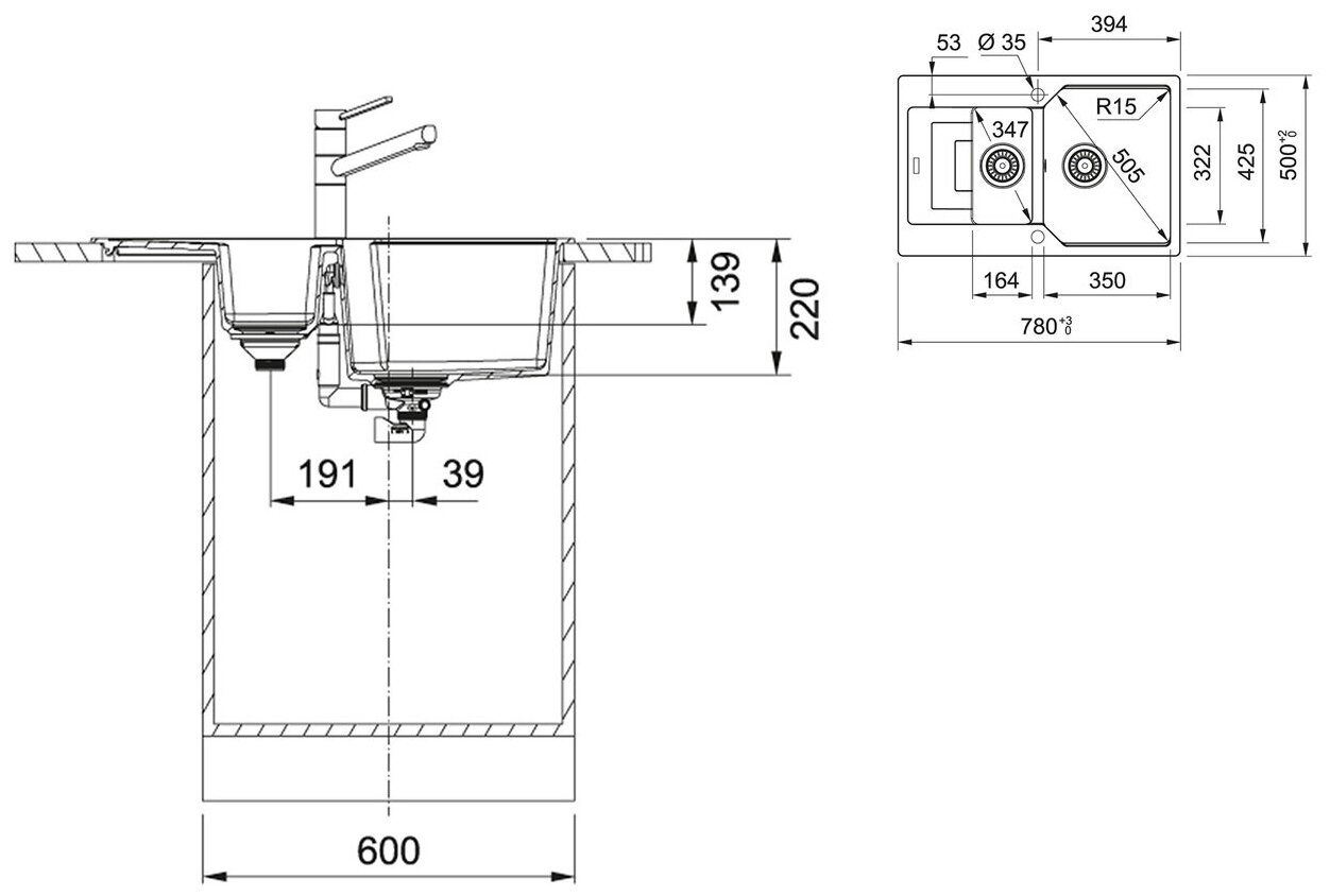 накладная, врезная на столешницу
